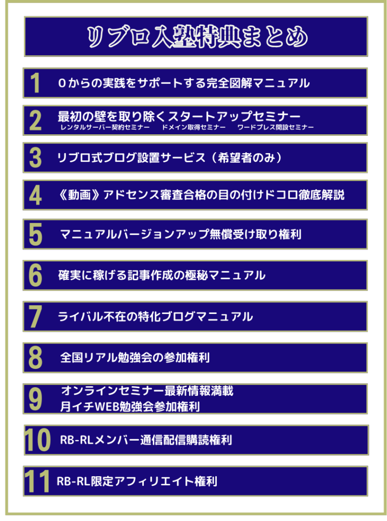 残り時間もあとわずかですから、WEBセミナーにご参加の方限定の「先行入塾特典」を一覧でまとめますね。
