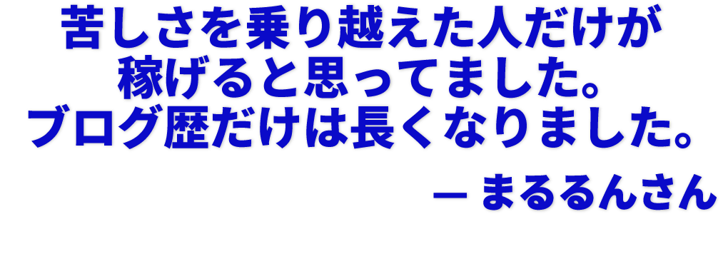 ブログは好きだけど、苦しい思いを乗り越えた人だけが稼げるようになるんだとずっと信じてきました。諦めずに続けてさえいればいつか稼げるようになる!と他の塾では教わってきましたし。