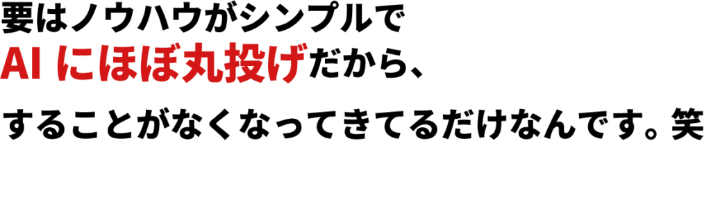 リブロでは、この2つを満たしたノウハウを生徒さんに提供し続けているからこそ「AIに丸投げして稼げる仕組み」があるってことです。