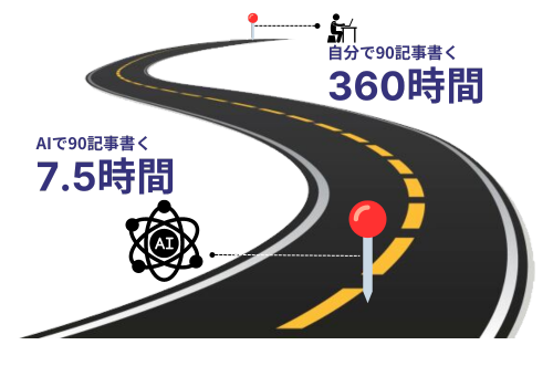 - 90日(3ヶ月)×5分=7.5時間(90記事)